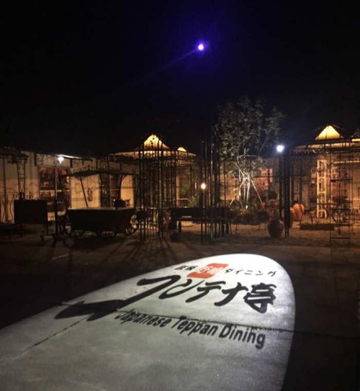キリンビールのロゴをコンテナ亭の壁に投射しました。 また地面にはコンテナ亭のオリジナルスクリーンを作成して投射しております。 キリンのロゴをよく見ると。。。。キリンの隠れ文字も見れますよ!! 是非ご来店の時にでもご確認くださいませ。